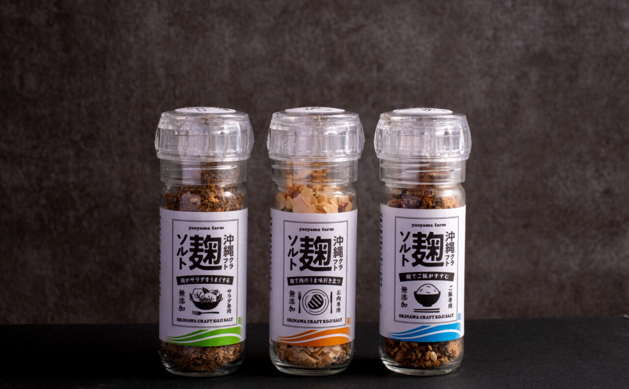 やえやまファームさまの「沖縄クラフト麹ソルトシリーズ」のパッケージを担当させていただきました。