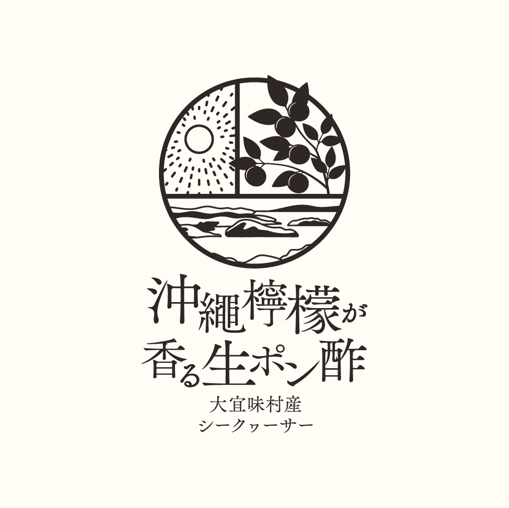 シークヮーサーの和名表記ヒラミレモン〈平実檸檬〉から「沖縄檸檬」とネーミングし、生産地大宜味村の情景とともに高級感あるパッケージに落とし込みました。