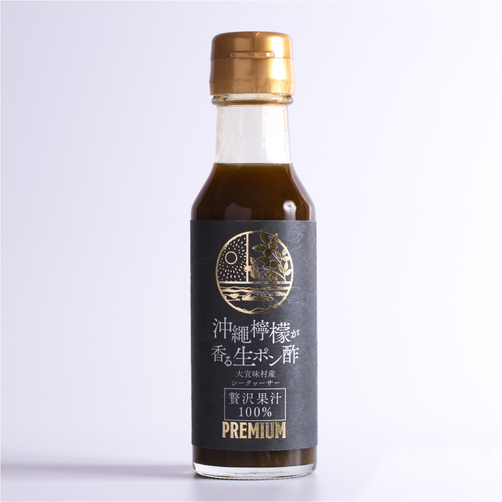 沖縄を代表する果実シークヮーサーは、健康長寿のスーパーフードとして愛されています。沖縄県大宜味村はシークヮーサーの世界最大の産地ですが、近年生産者の高齢化などもあり生産量が少なくとても希少となっています。その希少な大宜味村産シークヮーサーをたっぷり贅沢に使用した生ポン酢です。